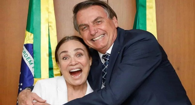 A atriz disse que não sente nenhum desconforto em relação ao fato de Bolsonaro ser saudosista ao período da ditadura militar no Brasil. “Eu estou vivendo a história do meu país do jeito que ela vem. Porque a história ela é… Ela anda.”