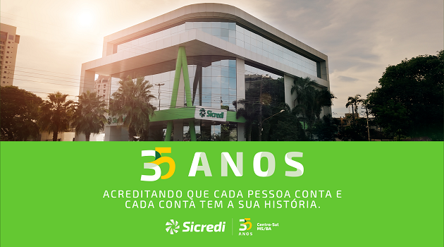 Neste dia 05 de julho, a Sicredi Centro-Sul MS/BA – instituição financeira cooperativa – comemora 35 anos de atuação, presente fisicamente em todos os 38 municípios da sua área de atuação em Mato Grosso do Sul, inclusive em dois distritos rurais, e agora presente também na Bahia, onde já possui equipes em quatro municípios e área de atuação em 54 cidades.
