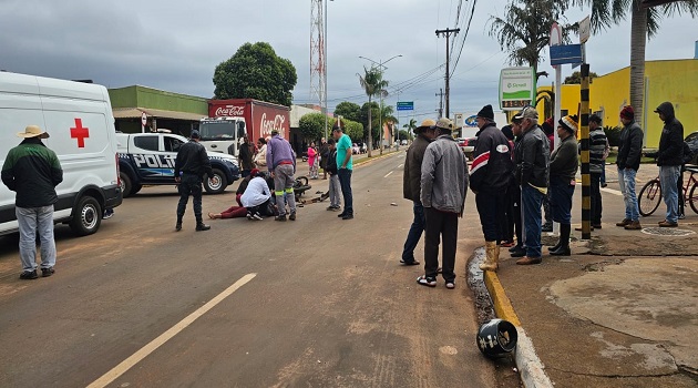 Acidente entre carro e motocicleta deixa mulher gravida ferida em Novo Horizonte do Sul