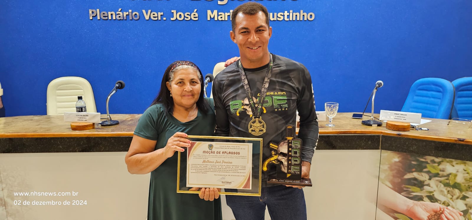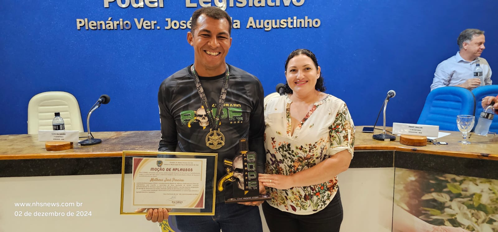 A vereadora Eva Gubert, ao justificar a moção, destacou a importância da participação de Mateus José Pereira em eventos de grande porte, como o Desafio BOPE, uma das maiores competições de corrida de obstáculos do estado. “A conquista de Mateus não é apenas um feito pessoal, mas um orgulho para toda a nossa cidade. Sua dedicação e esforço têm sido uma verdadeira inspiração para todos, especialmente para os jovens de Novo Horizonte do Sul, que veem no seu exemplo a possibilidade de alcançar grandes resultados no esporte”, afirmou a vereadora.