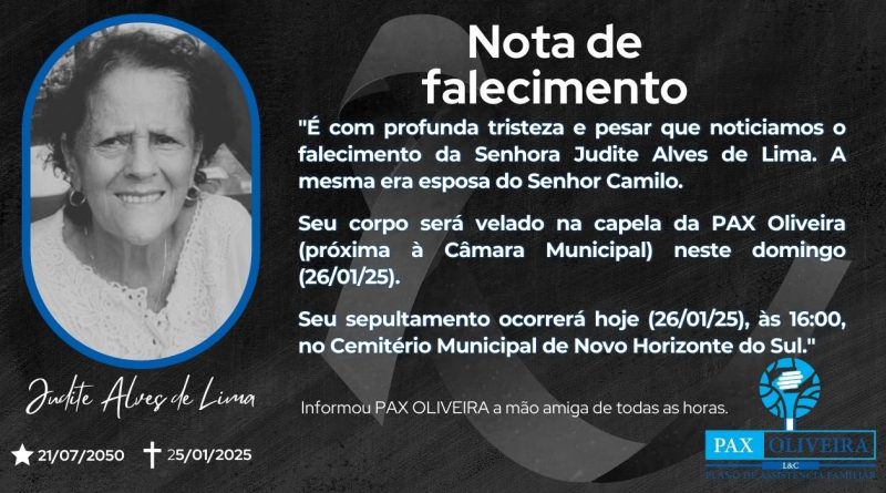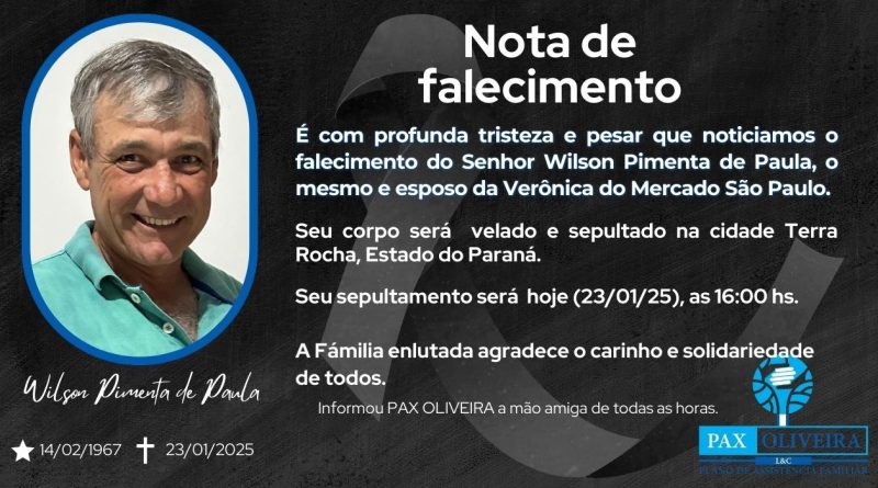 É com pesar que comunicamos o falecimento do Sr. Jaconias da Silva Rosa, ocorrido hoje (23/01). Seu corpo está sendo